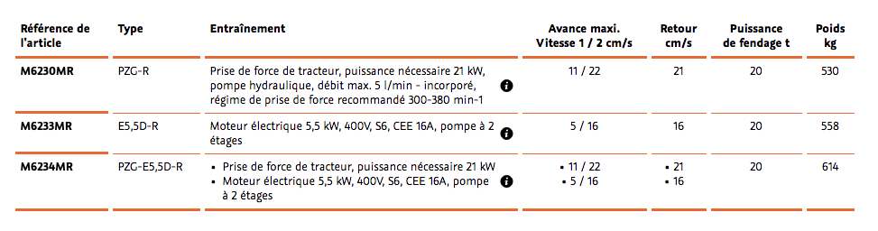 Détails HydroCombi 20 Le fendeur de bois vertical professionnel pour le bois de un mètre Fiche technique