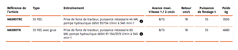 Détails SplitMaster 55 Grue Le fendeur de bois doté de la meilleure puissance avec grue de chargement de bois Fiche technique