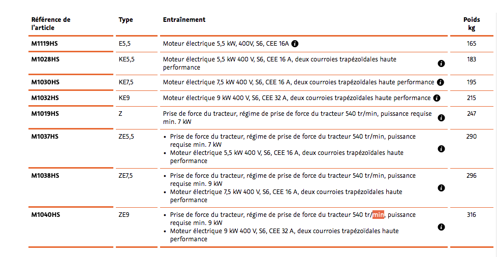 Détails Scie à chevalet oscillant WZ/E La scie circulaire basculante performante pour transmission de tracteur Fiche technique