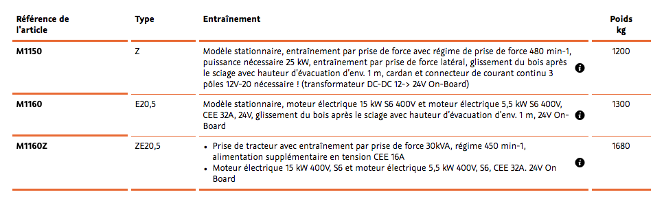Détails Scie à table roulante RE La scie pour bois de chauffage avec transmission électrique directe Fiche technique Vidéo