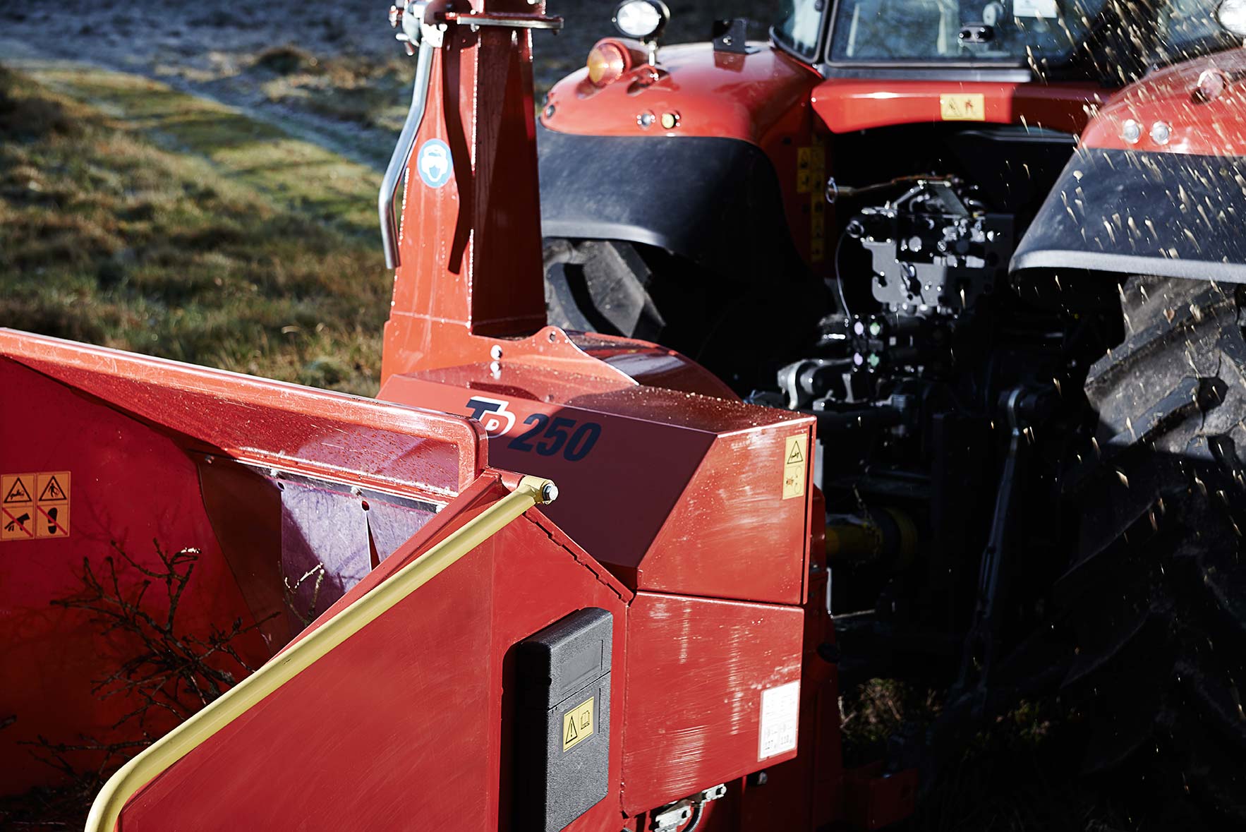 - TP 250 PTO possède un système d’alimentation puissant basé sur deux rouleaux d’alimentation hydrauliques, trois lames et contre-couteaux.